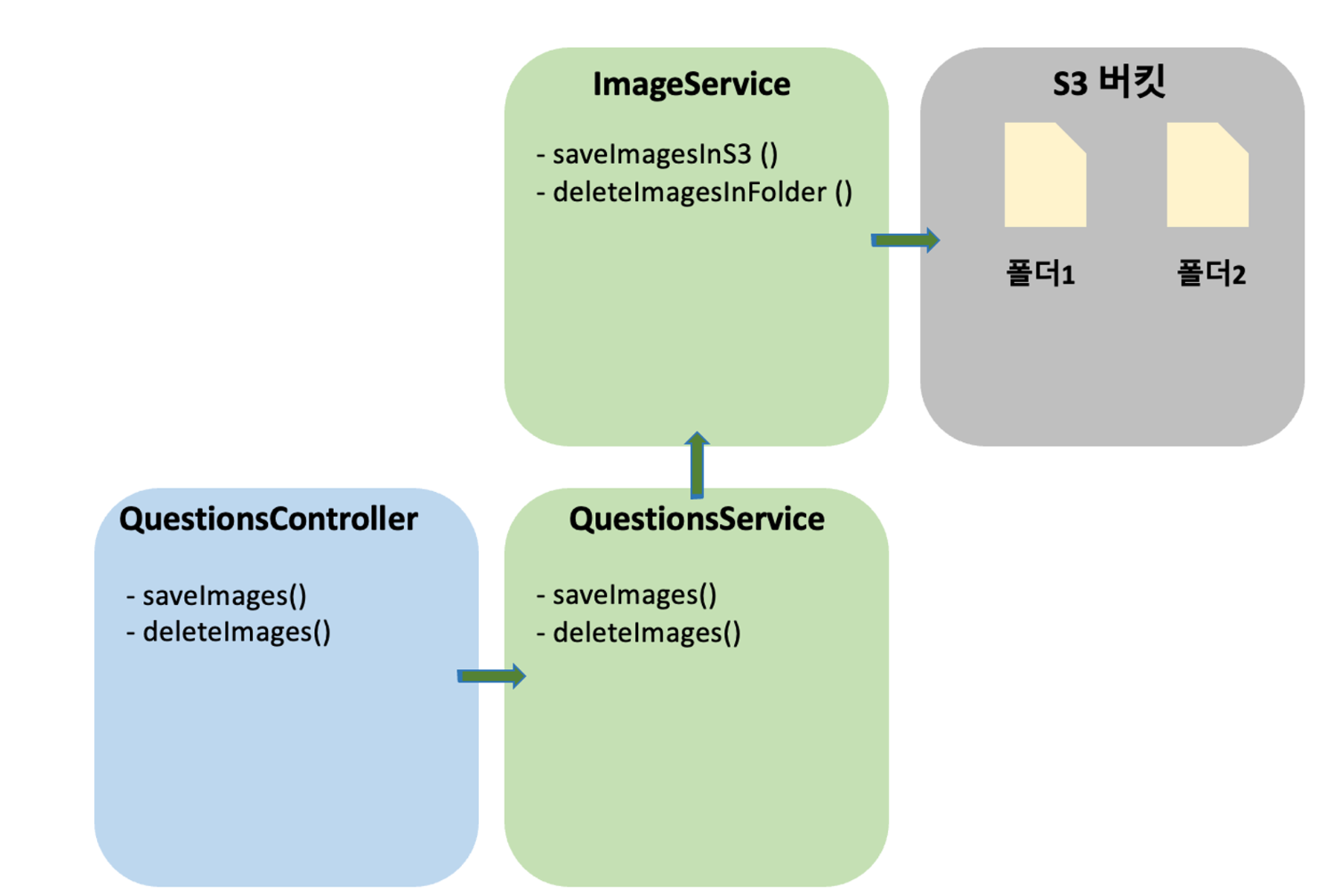 //Image관련 Service로직은 ImageService에 위임 - 추후 문제 데이터 추가시에 내용도 추가됨에 따라 QuestionsService 로직이 담당하는 부분이 많을 것으로 예상 -> 분산필요