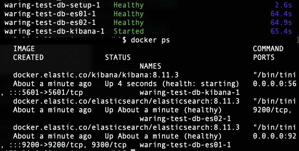 - 결론적으로 Docker compose.yml 파일에서 노드 3개를 생성하는 대신 노드 1개와 Kibana 조합으로 생성하여 작동 시켰습니다.