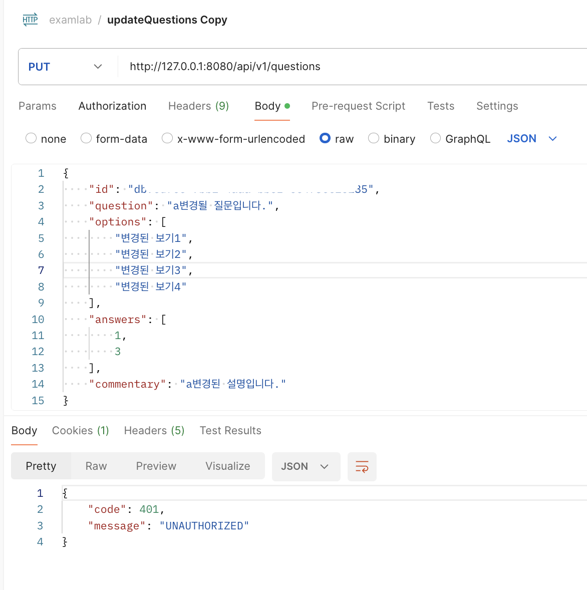 put("/api/v1/questions")