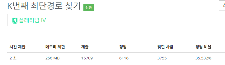 - 이제 다익스트라가 다 끝난후에 각 노드의 힙에 peek()에는 k번째 최단거리값이 남아있거나 아니면 힙의 크기가 k보다 작을 것이다. 이를 통해 출력문을 완성해준다