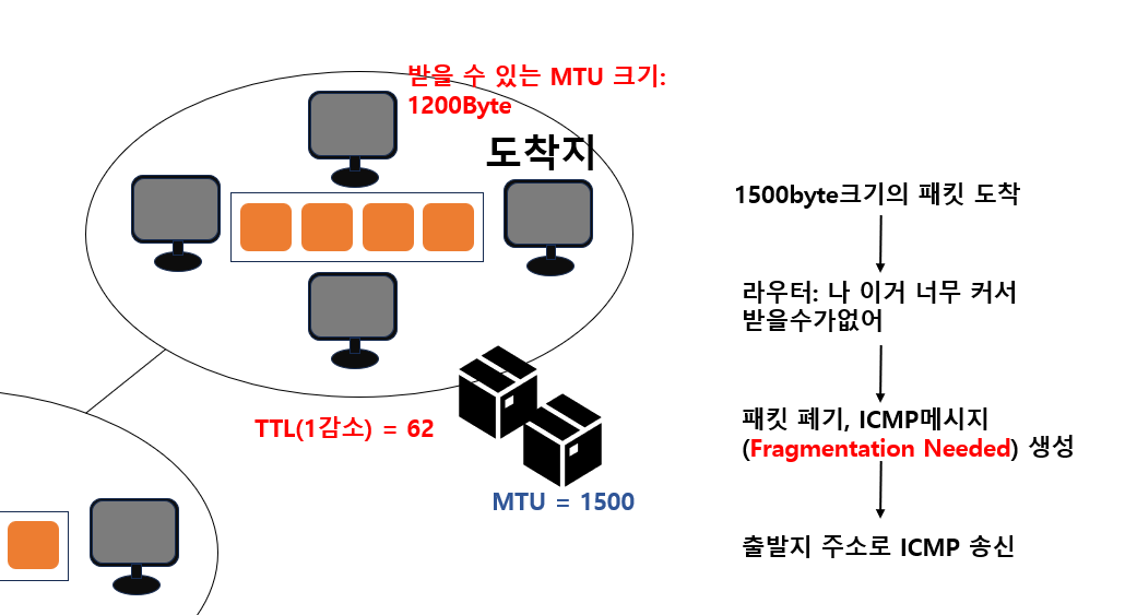 - VPN 터널(새로운 헤더를 붙여야해서 제한 MTU가 작다), MPLS 네트워크 같은 특수한 환경