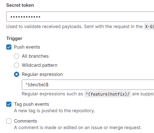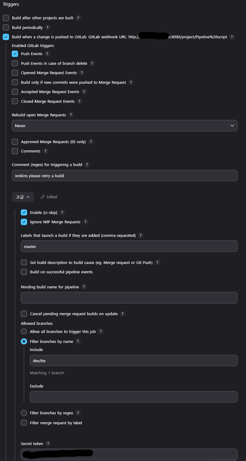 - 발급된 Secret token은 추후 gitlab의 webhook에 등록 필요