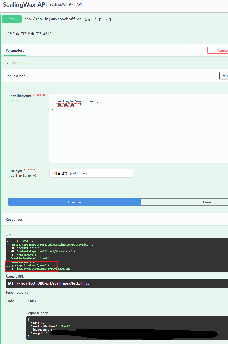 - Swagger UI 내에서 JSON 파트의 Content-Type이 올바르게 설정되지 않는 문제 해결