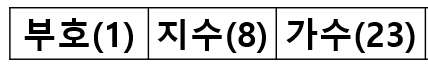 아래 표를 보면 이해가 쉽다. float은 정수형과 달리 값을 부호, 지수, 가수 이렇게 3개로 나눈다.