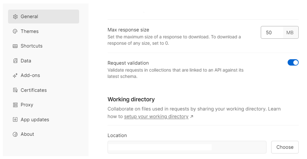 상단에 세팅버튼을 눌러주고 Settings - General 로 들어가고 목록에 보면 Working directory가 있을거다.