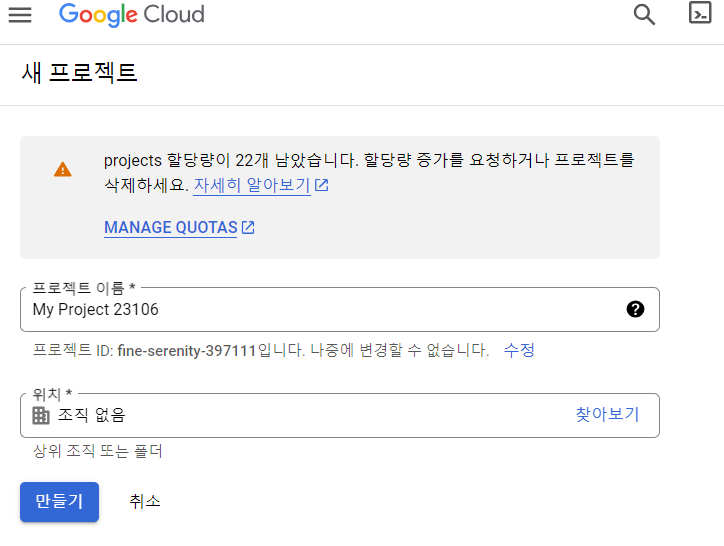 이후 사용자 인증정보 이동후 OAuth client ID를 생성해줘야한다