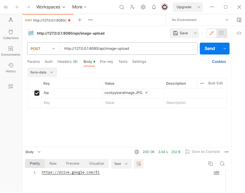 테스트에 앞서 post 설정후 Body에서 라이브러리에 있는 사진파일을 선택해준다