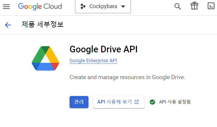 라이브러리로 이동후 Google Drive API를 활성화시켜준다