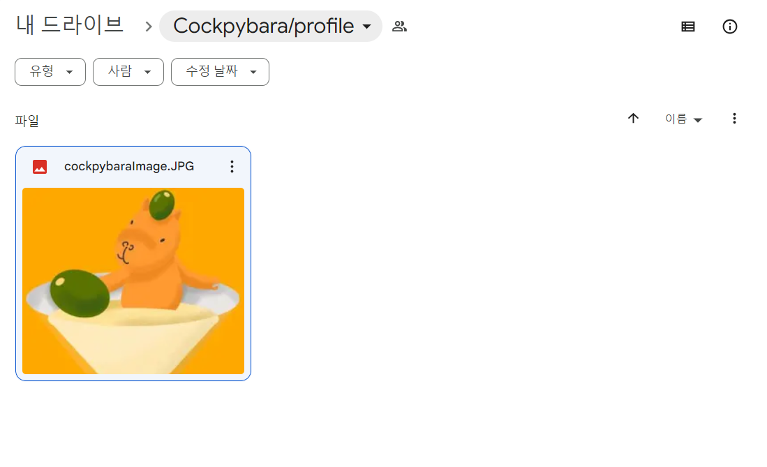 이제는 구글 드라이브에 들어가서 이미지가 잘 들어왔는지 보겠다.