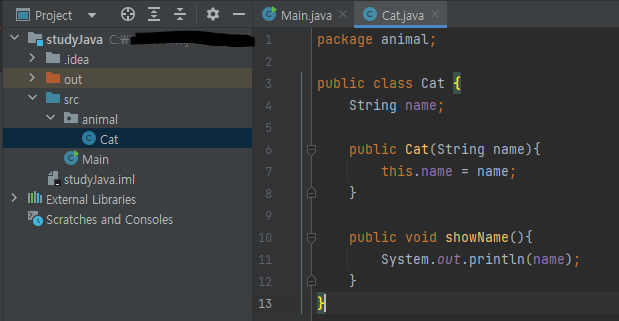 - 패키지 이름과 위치한 폴더의 이름이 같아야 한다