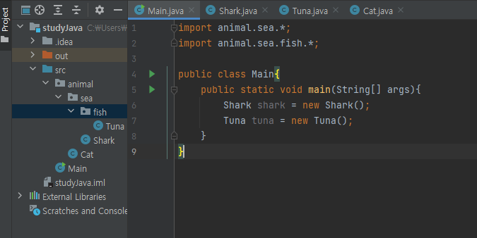 그렇다보니 하위 패키지의 클래스를 이용하고 싶다면 import문을 하나 더 작성해야 한다.