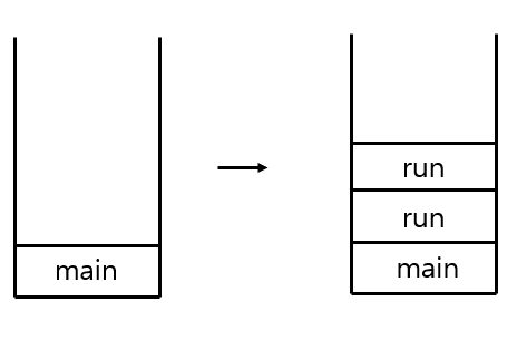 그리고 start()를 하지 않으면 쓰레드 생성안하고 그냥 main쓰레드에서 run메서드를 2번 호출한게 되어버린다