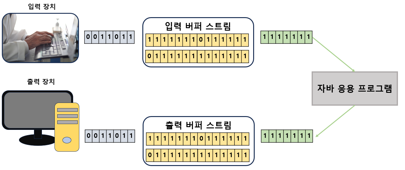 - 입출력 효율을 높이기 위해 버퍼를 사용하는 보조스트림이다.