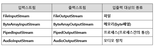- InputStream과 OutputStream은 모든 바이트기반 스트림의 조상이다.