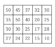 첫째 줄에는 지도의 세로의 크기 M과 가로의 크기 N이 빈칸을 사이에 두고 주어진다. 이어 다음 M개 줄에 걸쳐 한 줄에 N개씩 위에서부터 차례로 각 지점의 높이가 빈 칸을 사이에 두고 주어진다. M과 N은 각각 500이하의 자연수이고, 각 지점의 높이는 10000이하의 자연수이다.