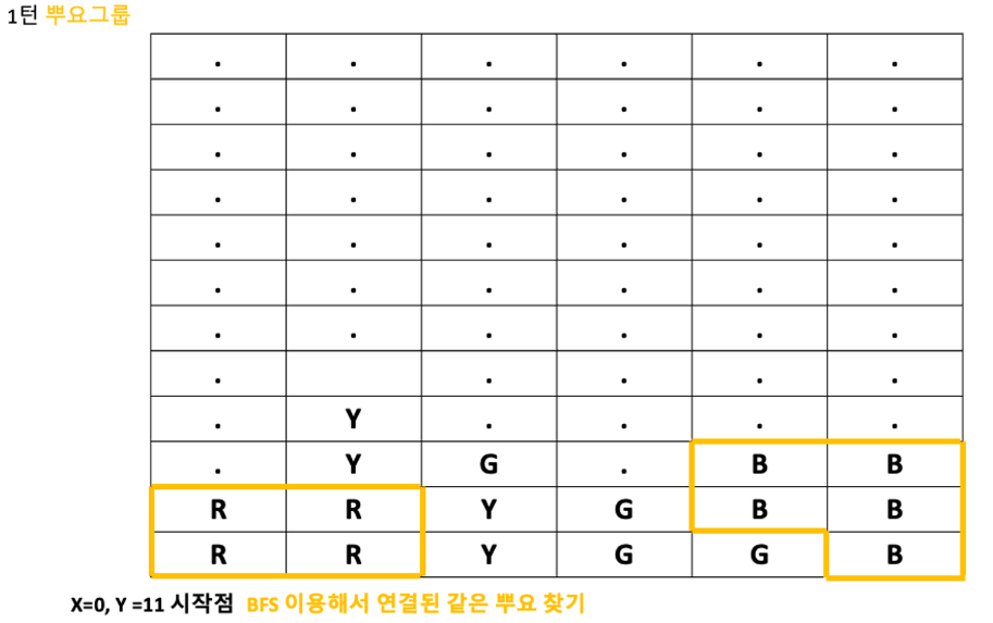 - BFS를 활용해서 연결된 뿌요 그룹 확인