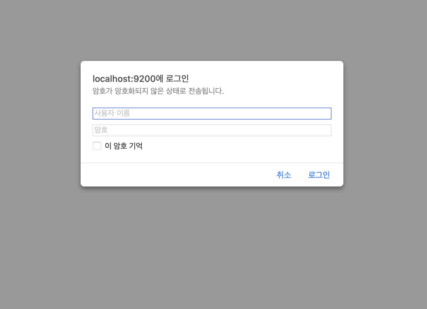 하단 창이 뜨게되면 .env파일에서 설정했던 아이디와 비번을 입력해준다