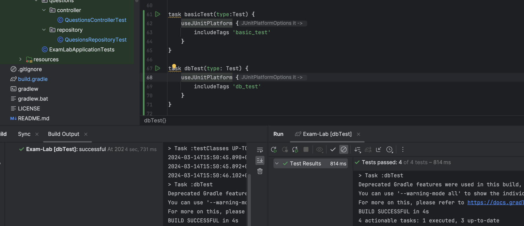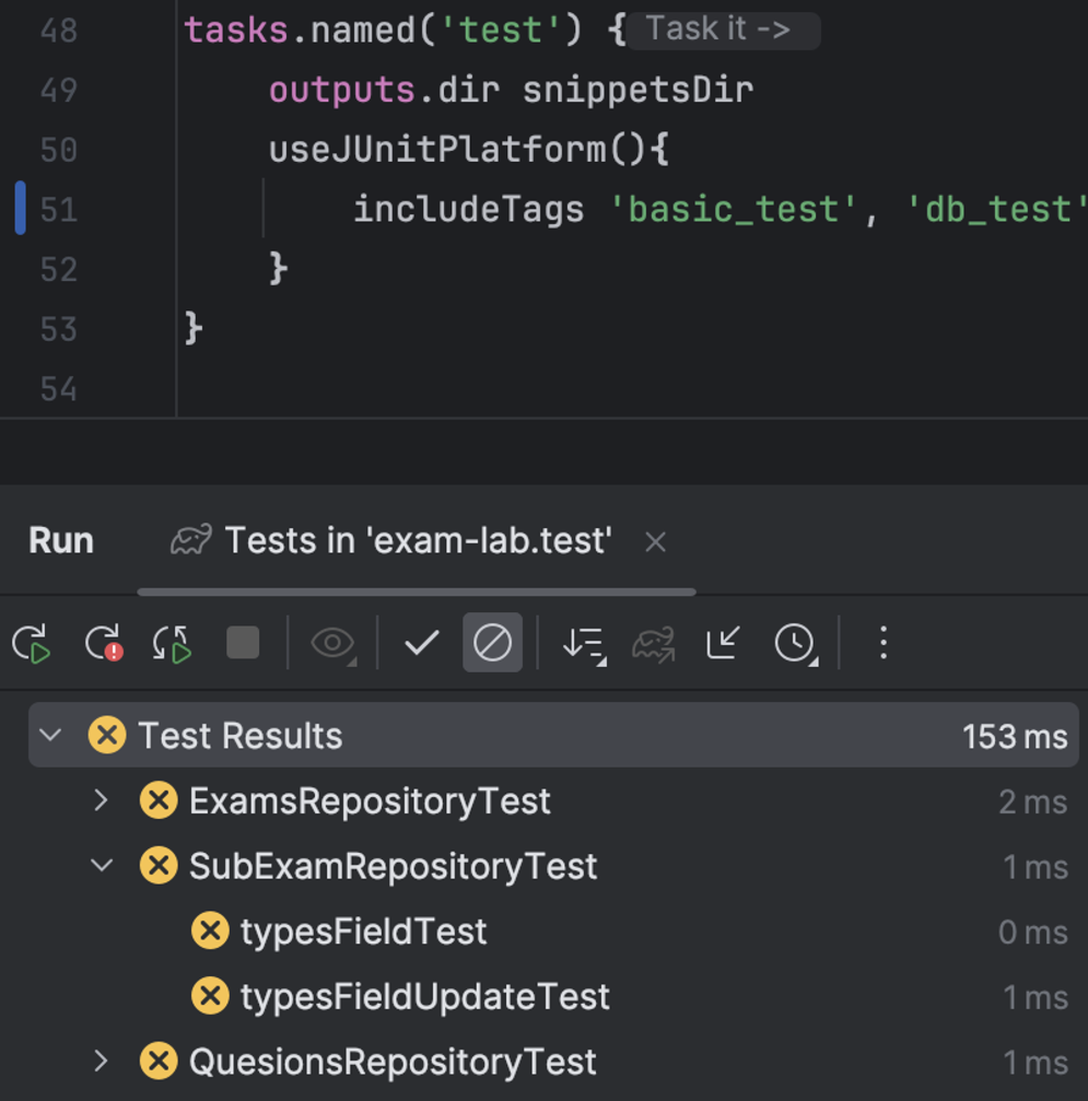 - ExamsRepositoryTest, SubExamRepositoryTest, QuestionRepositoryTest